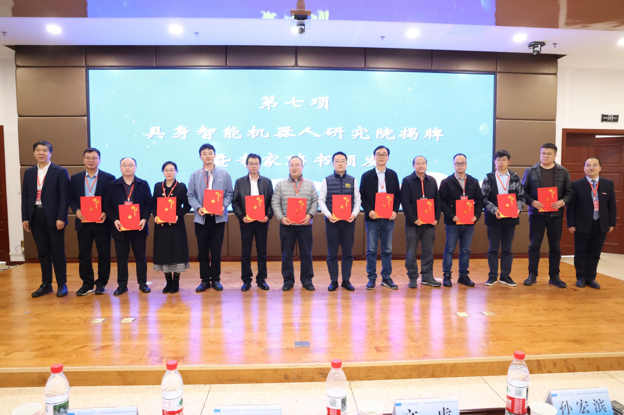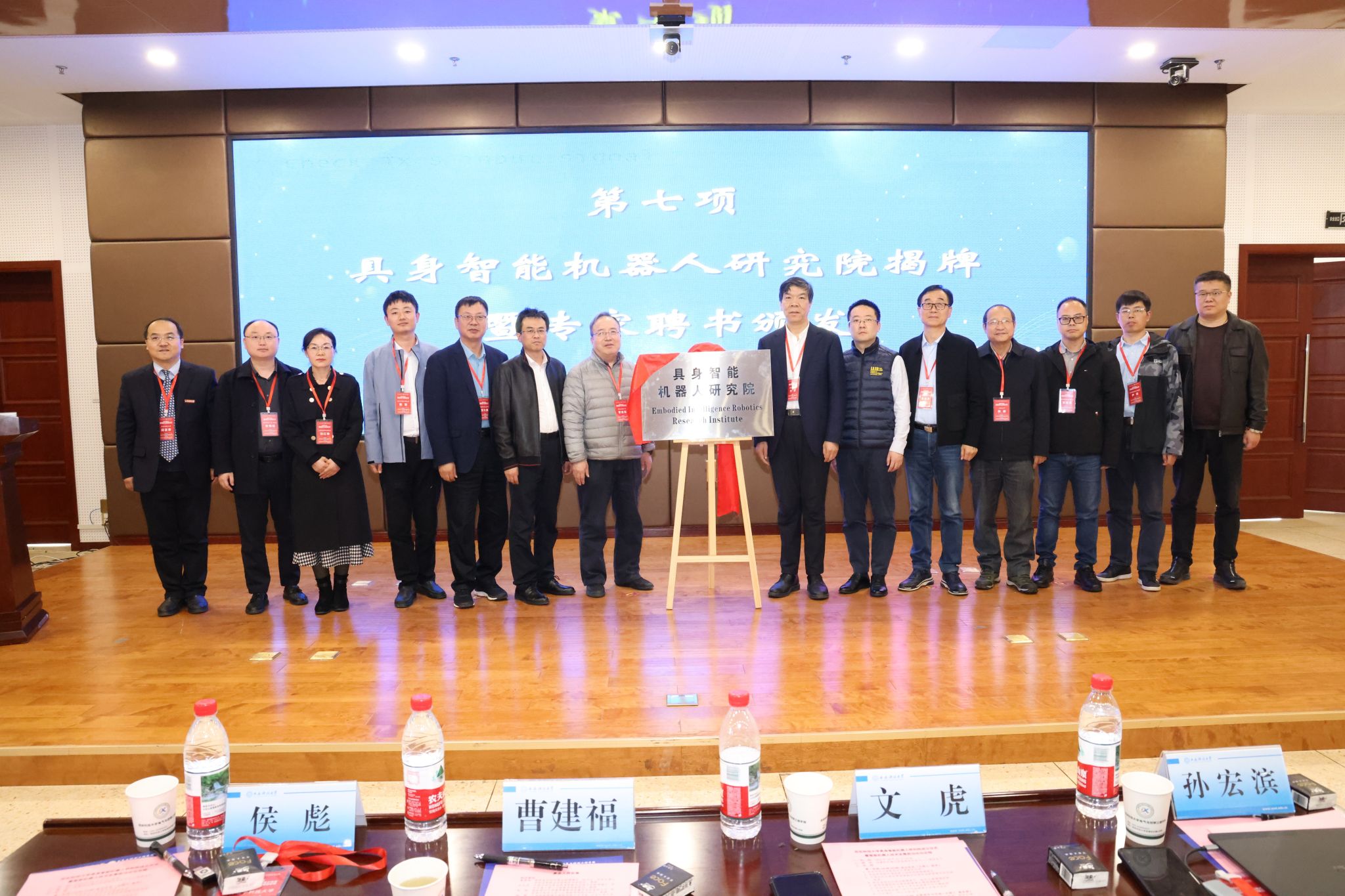 文虎和寇发荣为具身智能机器人研究院成立揭牌,并为研究院特聘专家颁发了聘任证书。