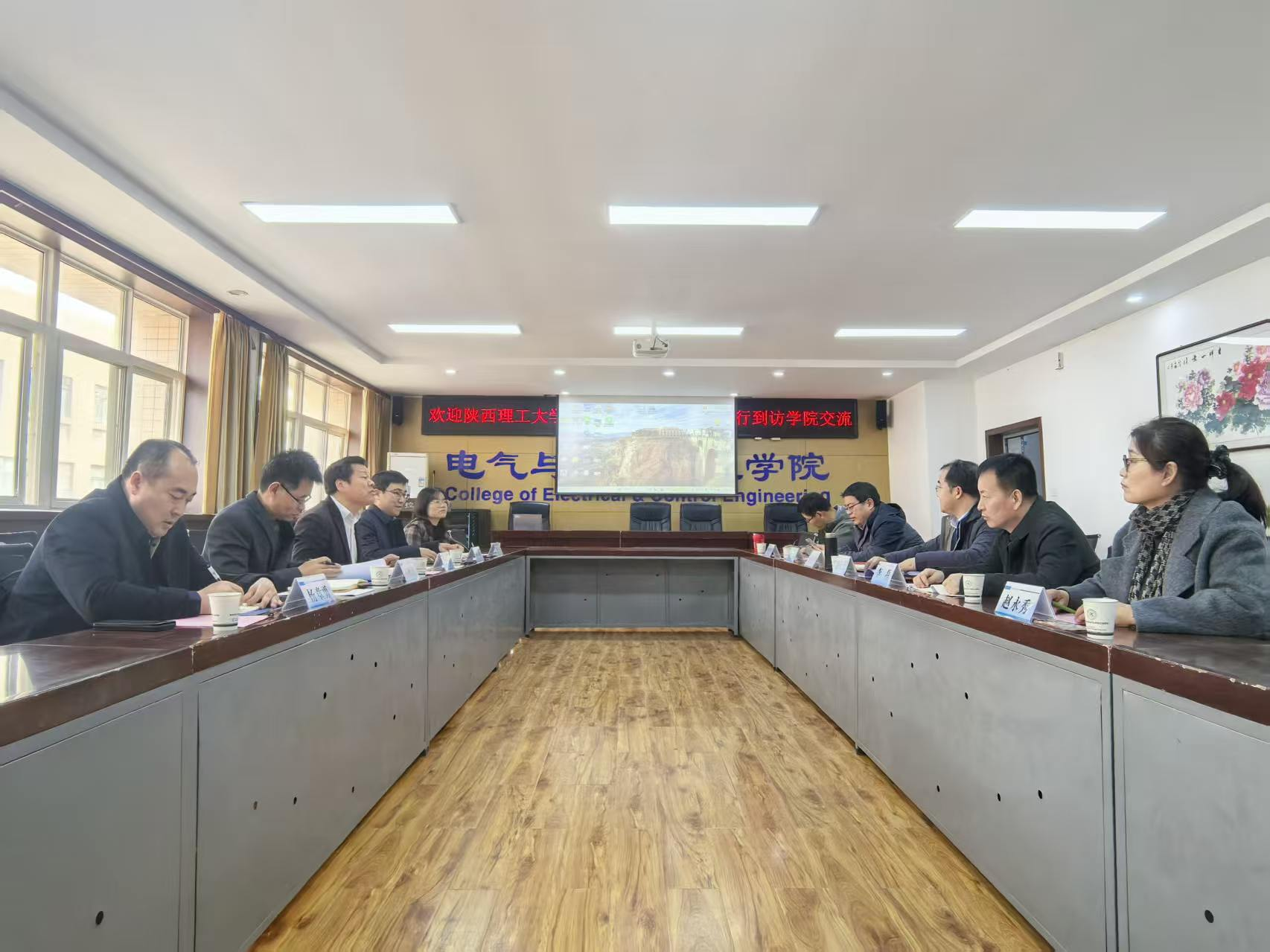 3月6日上午,陕西理工大学电气工程学院院长闫群民、副院长李欢、院长助理、自动系主任马帅旗、电工基础课部主任杨章勇、电气系主任宋潇等一行6人到访我校15vip太阳集团,并开展交流座谈活动。15vip太阳集团院长寇发荣、学科秘书、测控技术系党支部书记刘宝、自动化系主任张玉峰、电气工程系主任李磊、党支部书记赵永秀、测控技术系主任昝宏洋等参会。座谈会由院长寇发荣主持。