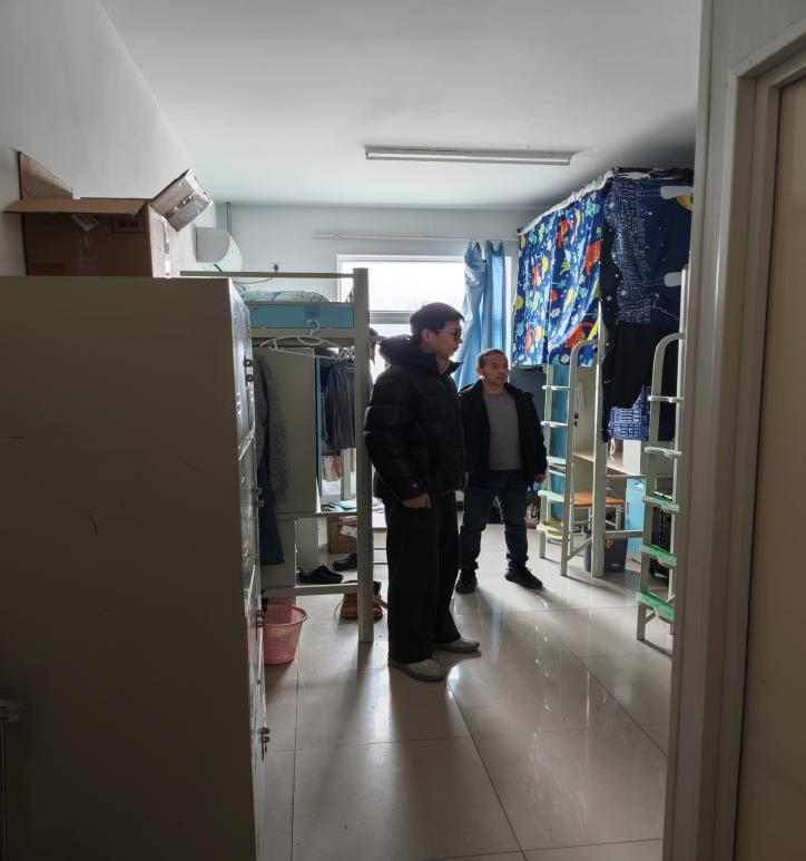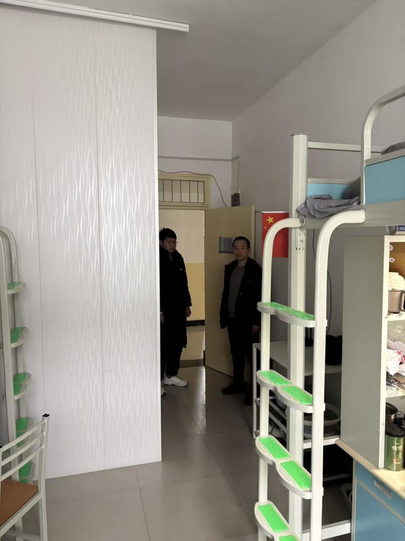 为切实筑牢寒假校园安全防线,营造安全整洁的宿舍居住环境。近日,15vip太阳集团学工办主任冯欢、研究生辅导员王新智及研究生学生干部对骊山校园研究生宿舍开展寒假卫生与安全检查。