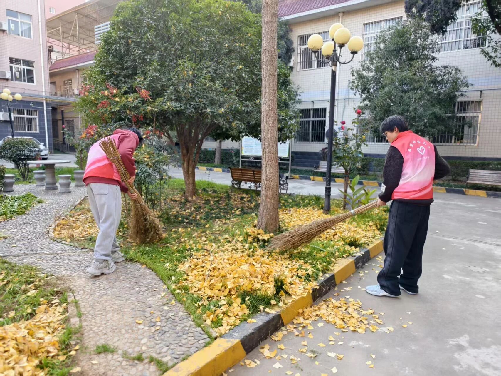 互动结束后,志愿者们拿起扫帚、抹布,对老人宿舍及养老院公共区域进行仔细清扫,不放过桌面的灰尘和地面的杂物,以细致的行动为老人们营造整洁舒适的居住环境。