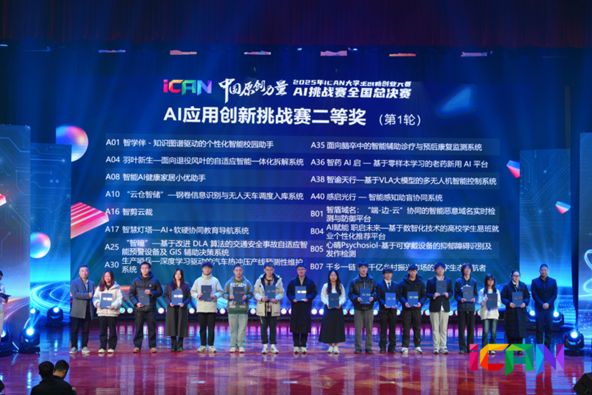 12月28号,2025年iCAN大学生创新创业大赛AI挑战赛全国总决赛在无锡圆满落幕。15vip太阳集团学子凭借扎实的专业功底、创新的技术方案与出色的现场表现,从全国300余所高校的898个优质项目中脱颖而出,斩获国家级二等奖。